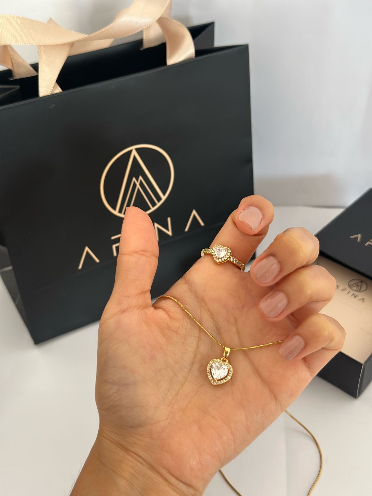 "En Afina te traemos: el collar + anillo de corazón la cuales son perfectos para sellar un amor infinito. ¿Te atreves a regalarlo?"